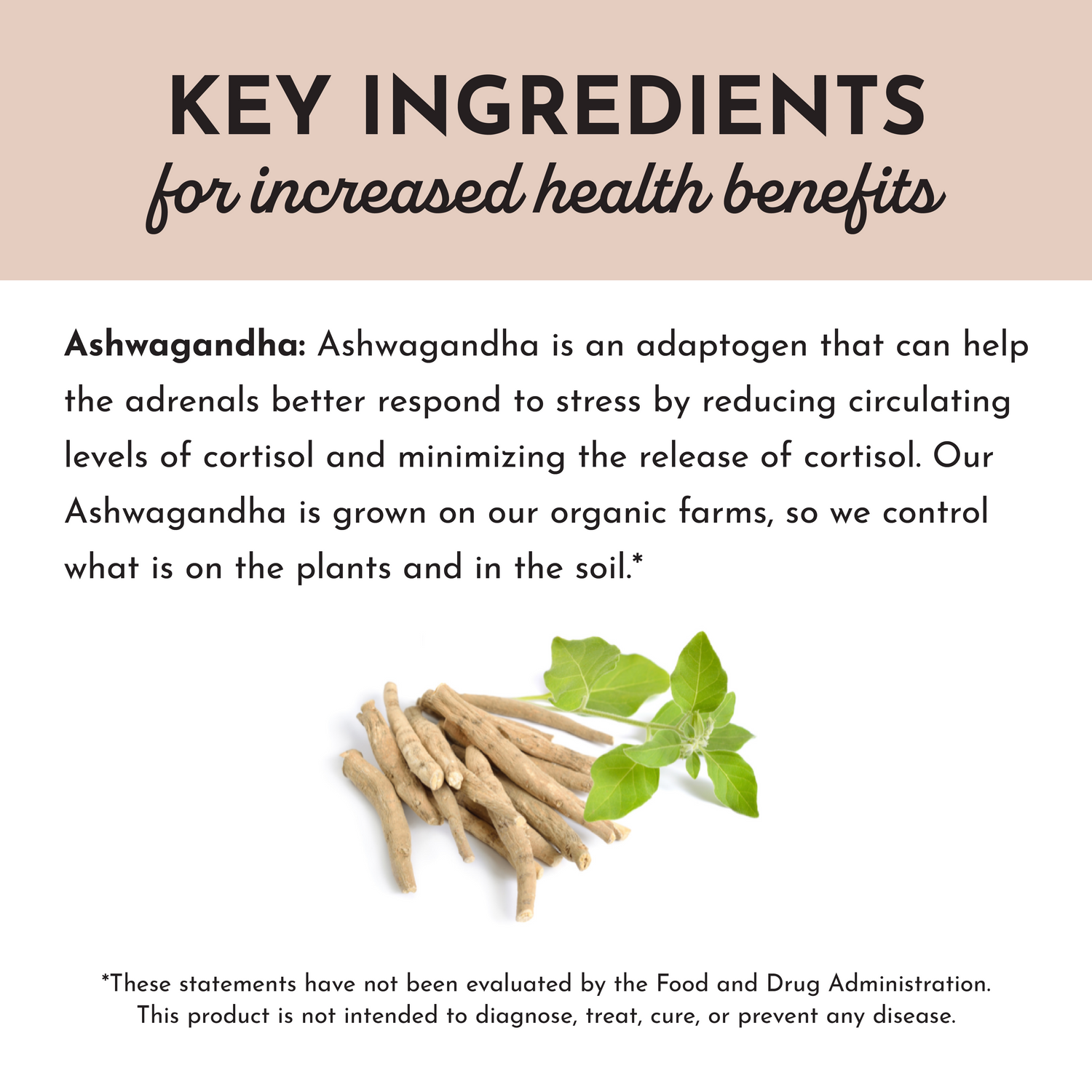 Just Ingredients Ashwagandha Supplement supports the body’s ability to adapt to occasional stress while promoting a calm, focused mindset.* Known for its adaptogenic properties and centuries of traditional use, Ashwagandha helps maintain balance during physical or emotional challenges.* Our Ashwagandha is grown and harvested on our own local farms using organic practices and regenerative, nutrient-rich soil. By managing every step from cultivation to production, we thoughtfully craft a supplement that supports quality, potency, and absorption.