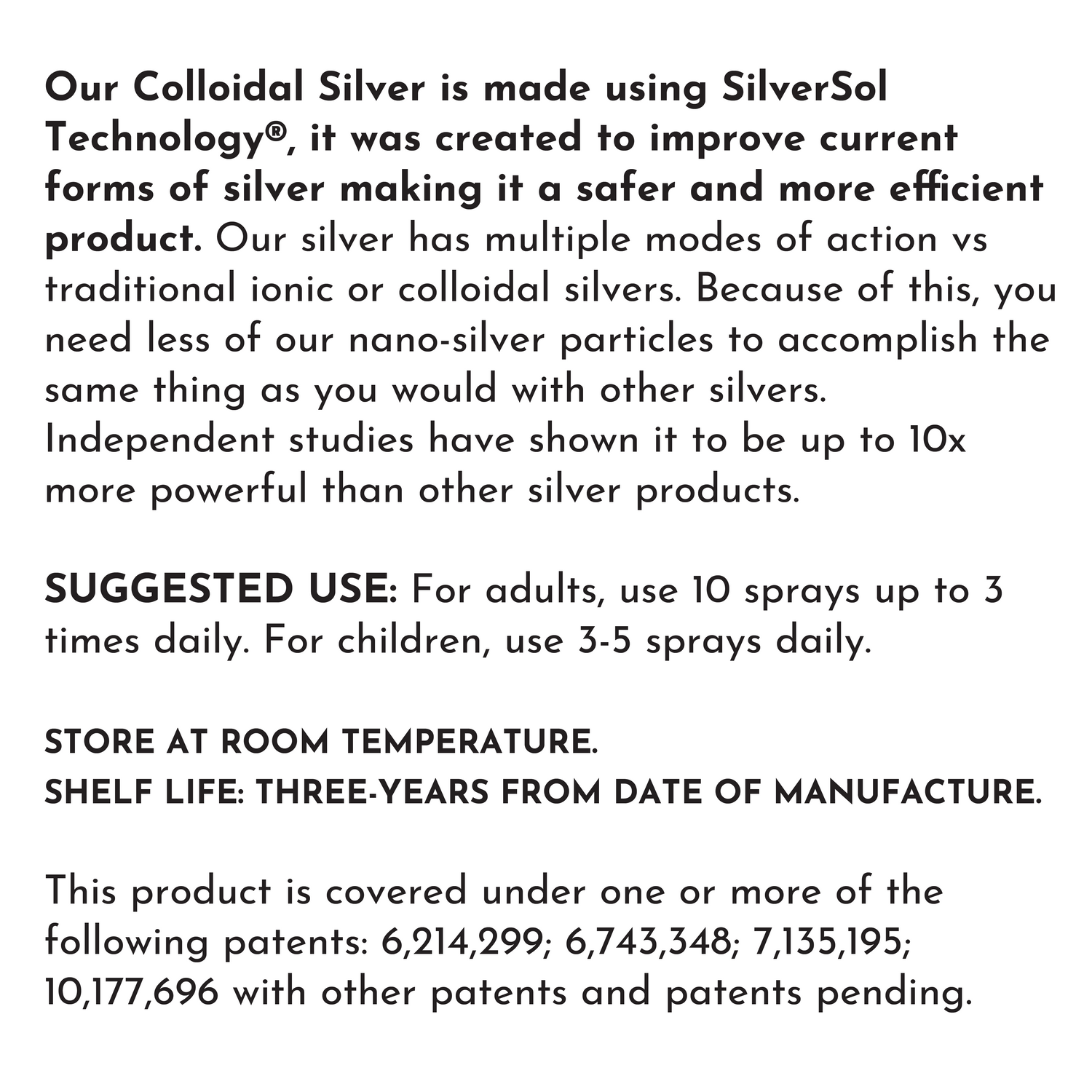 Our Colloidal Silver is made using SilverSol Technoogy®, it was created to improve on