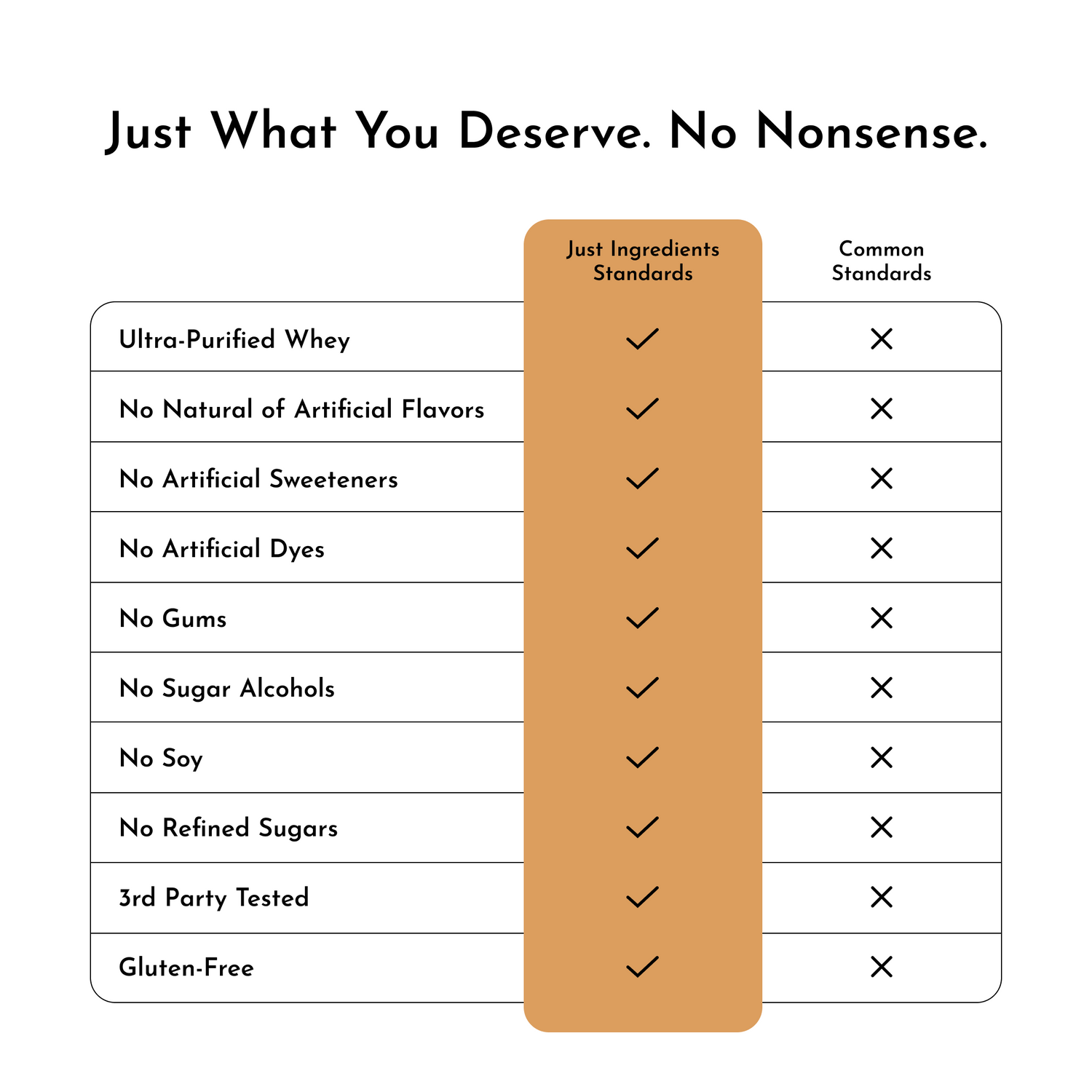 Just Ingredients’ Protein Powder is 100% natural with 5 protein sources for easy digestion and an amazing, rich taste.