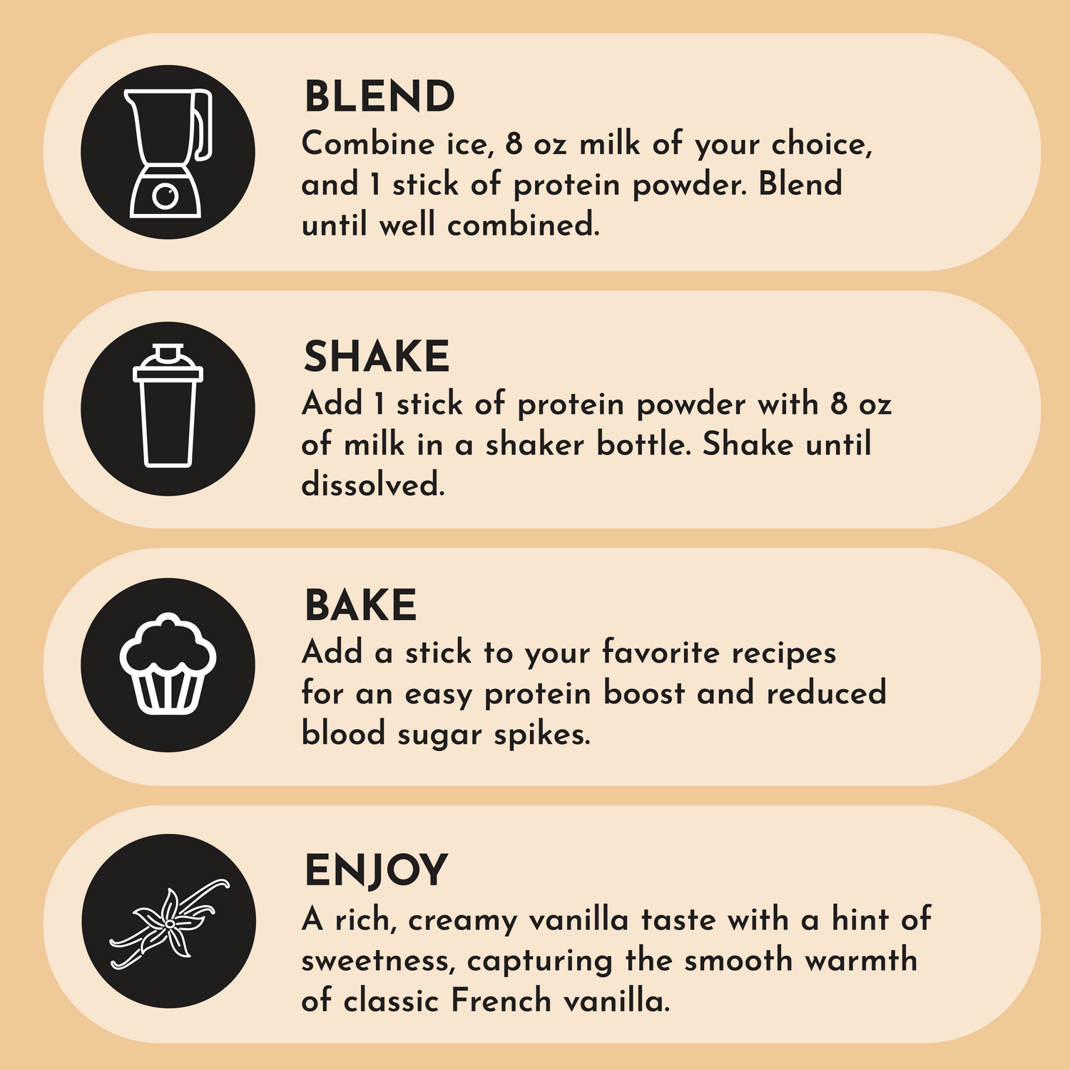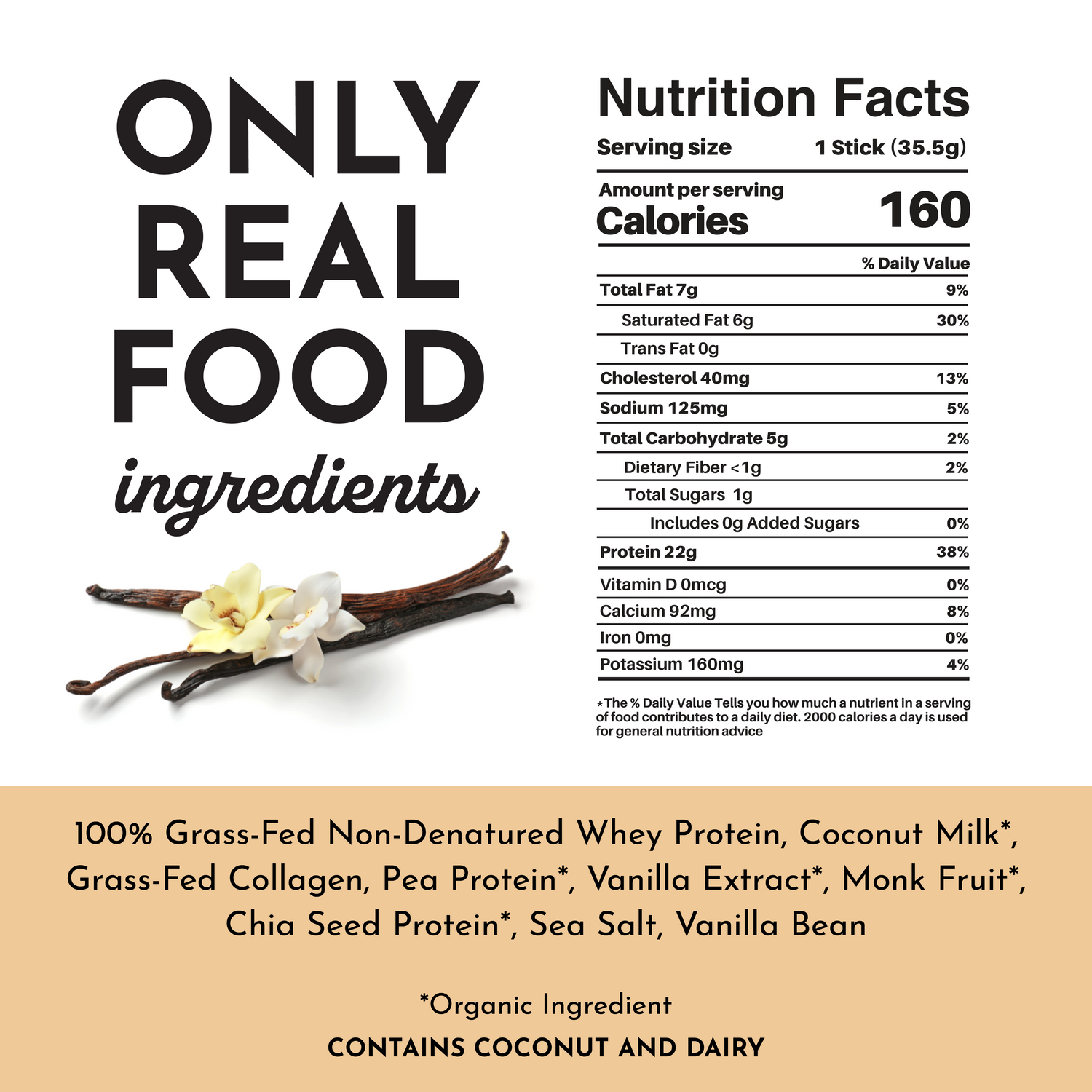 French Vanilla Protein Powder is made with four different protein sources, including 100% grass-fed, non-denatured whey protein from New Zealand. Flavored without artificial sweeteners or sugar alcohols.