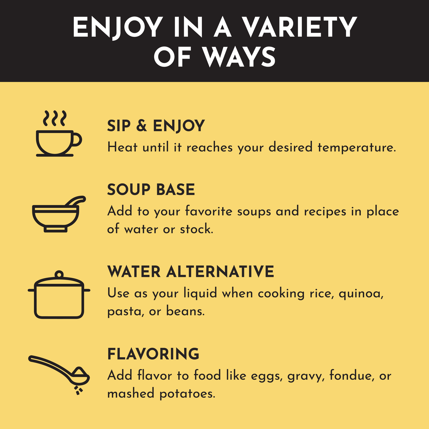 Lemon Ginger Bone Broth Powder, packed with 9g of protein and essential amino acids. Made with whole food ingredients and no artificial additives, it's a delicious and nutritious addition to your day. Plus, its delightful flavor makes it ideal for sipping, and it can even be used as an alternative to water when cooking rice or pasta.
