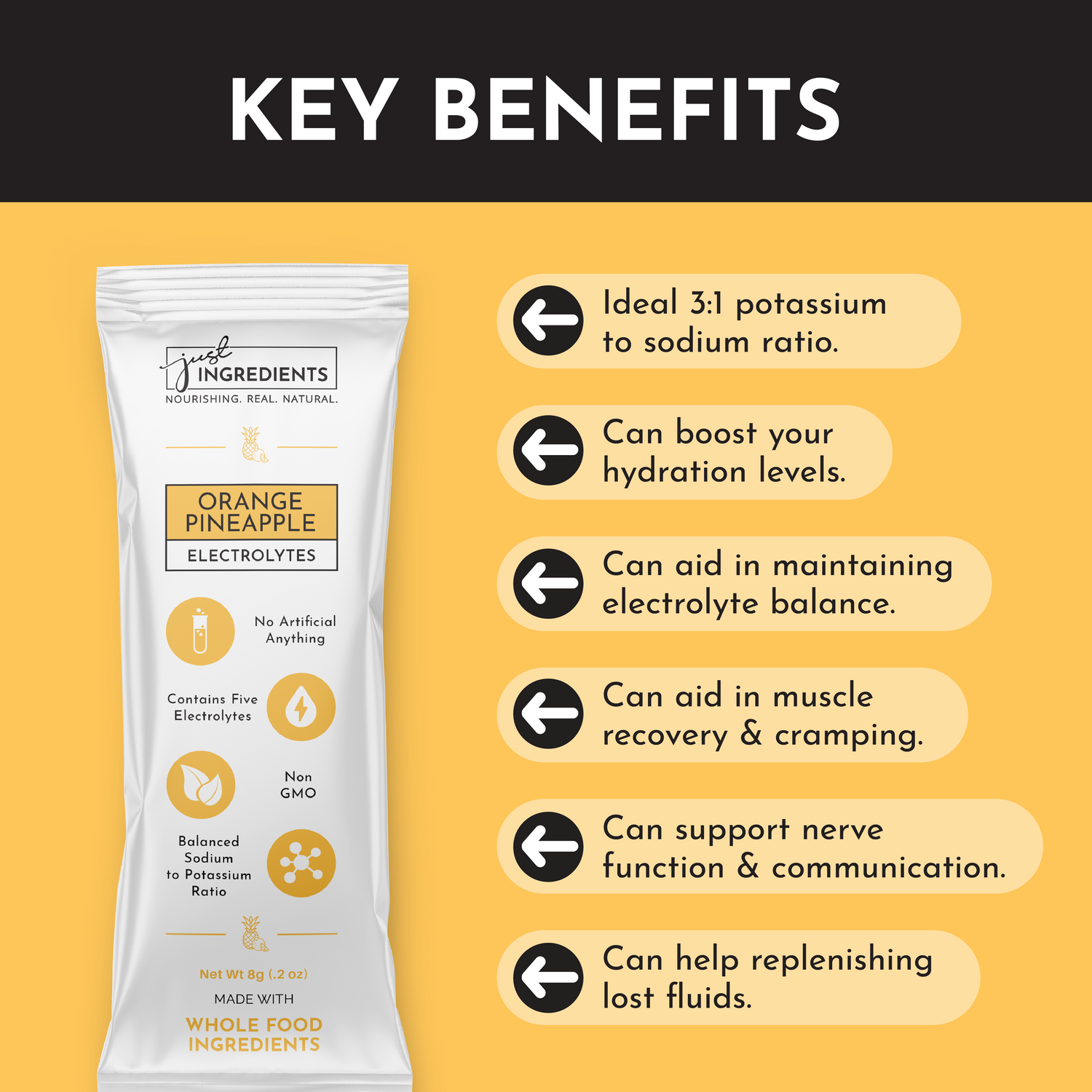 At Just Ingredients, we always prioritize your well-being. Our electrolyte powder is carefully formulated to meet your needs, providing a convenient and delicious way to stay hydrated. Whether you're an athlete or simply seeking optimal hydration, choose our electrolytes for a natural and refreshing experience that fuels your body with the best ingredients nature has to offer.