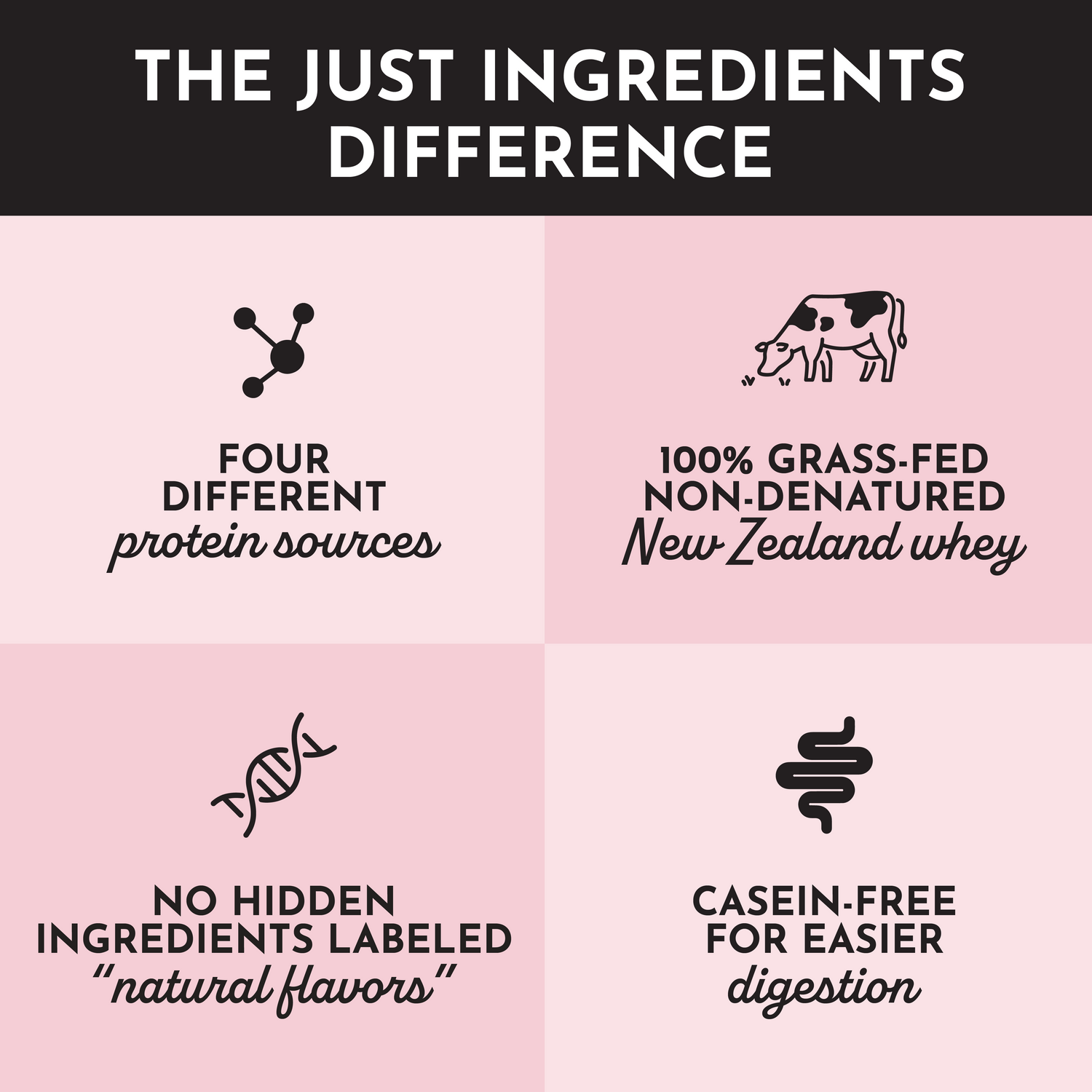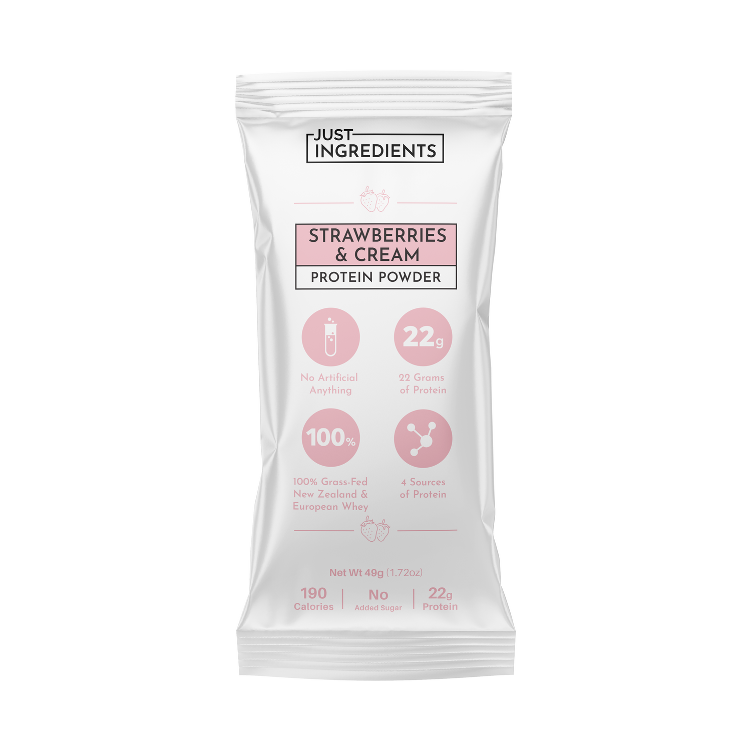 Rich and creamy Strawberries and Cream Protein Powder is made with four different protein sources, including 100% grass-fed, non-denatured whey protein from New Zealand. Flavored without artificial sweeteners or sugar alcohols.