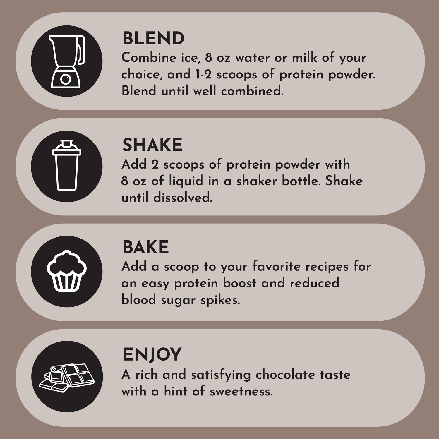Rich and creamy chocolate flavor, with a smooth, indulgent taste that's both sweet and satisfying, offering a slightly thicker texture than the whey protein while still remaining smooth and delicious.